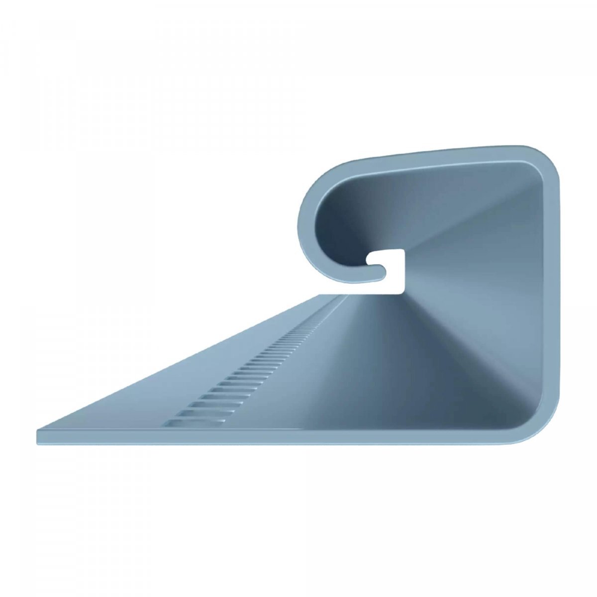 J-профиль относится к комплектующим водосточных систем. Используется в качестве направляющего при креплении боковых частей софитов. Выполнен из первичного сырья поливинилхлорида методом коэкструзии. Выпускается в упаковках по 30 штук.