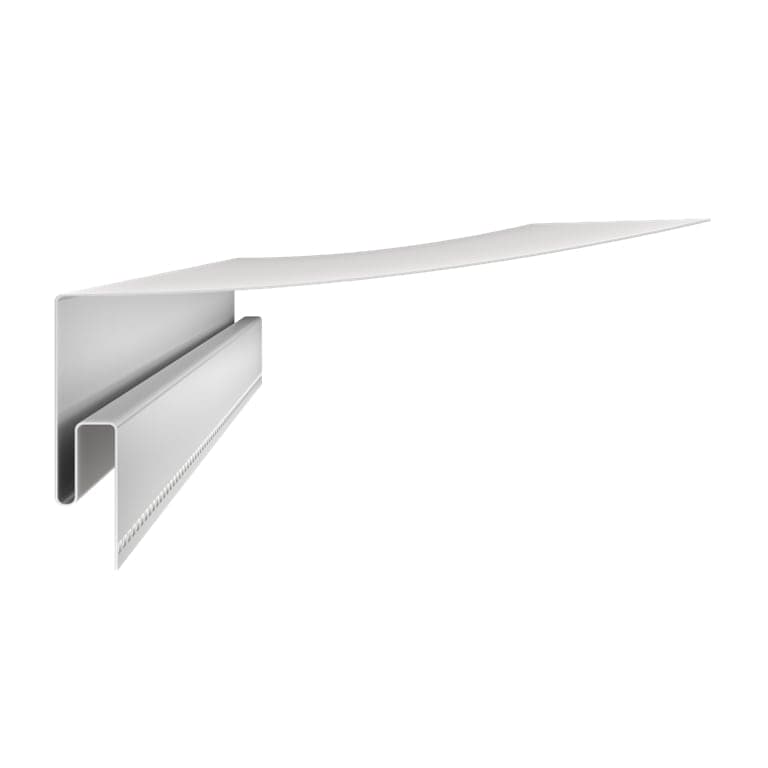 J-профиль относится к комплектующим водосточных систем. Используется в качестве направляющего при креплении боковых частей софитов. Выполнен из первичного сырья поливинилхлорида методом коэкструзии. Выпускается в упаковках по 30 штук.