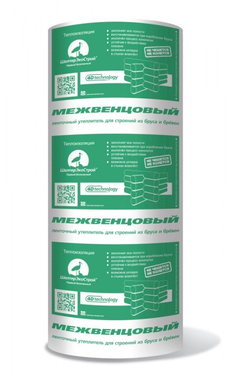 Межвенцовый утеплитель Межвенец ЭкоШелтер на 100% выполнен из полиэфирного волокна. Межвенец ЭкоШелтер активно применяют при строительстве деревянных построек, а его компактность позволяет размещать между бревнами, использовать для утепления швов в окнах, дверях.