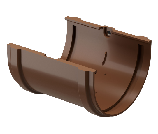 Элемент, который соединяет желоба между собой и создаёт герметичный, надежный стык. Крепится соединитель желобов на торцы элементов. Является доборным элементом.